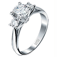This beautiful engagement ring setting is made by Scott Kay and features a round brilliant cut diamond on either side of your choice of a center diamond. In addition two small "suprise" diamonds are placed on the two sides of the setting.Price: $3,690.00