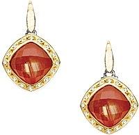 A highlight of the season-- incredible scarlet showstoppers with a natural edge. Rutilated Quartz adds raw je ne sais quois to make these diamond-crescent framed earrings luscious, glittering, and utterly wearable works of art.