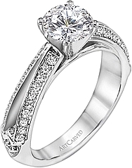 This Beautiful Diamond Engagement Ring by art carved features a split shank with pave diamonds going half way around the band with a design at the end of the split on each side of the band.Price: $1,410.00