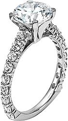 This beautiful engagement ring setting by Diana features 18 round brilliant diamonds that are set using common prongs to maximize diamond brilliance.