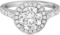 This Henri Daussi diamond engagement ring can be set with the diamond of your choice and is surrounded by a diamond halo. Along the sides of the band are pave set diamonds.Price: $3,200.00
