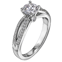 This stunning diamond engagement ring setting features two strands of pave diamonds that are bow shaped on each side of the setting. This setting also contains two surprise diamonds.Price: $2,110.00
