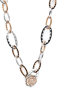 There's about a million ways to wear this gorgeous chain with signature Tacori details. Warm 18k rose gold and cool .925 sterling silver interlock into a breezy open-link chain with crescent designs decorating each and every link. Absolutely stunning on its own, this piece can be worn as a lariat or longer chain, with a single pendant or many. It is fastened with the 18k rose gold Tacori seal toggle.