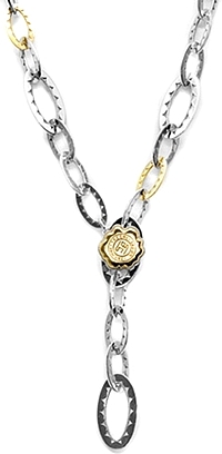 There's about a million ways to wear this gorgeous chain with signature Tacori details. Rich 18k gold accents cool .925 sterling silver interlock into a breezy open-link chain with crescent designs decorating each and every link. Absolutely stunning on its own, this piece can be worn as a lariat or longer chain, with a single pendant or many. It is fastened with the 18k golden Tacori seal toggle.