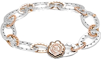 Rippling with signature crescent silhouette patterns, smooth crescent-designed ovals of rich 18k rose gold and cool .925 silver connect into an airy open-link chain, fastened together with an 18k rose gold Tacori seal toggle.