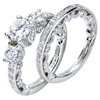 This beautiful engagement ring setting is from the Verragio Paradiso Collection and features two round brilliant diamond side stones and pave set round brilliant diamond shoulders to enhance the beauty of your center stone.Price: $5,950.00