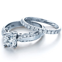 This beautiful engagement ring setting is from the Verragio Insignia Collection and features two rows of pave set round brilliant cut diamonds with a brushed center. This look will enhance the beauty of the center stone of your choice.Price: $2,750.00