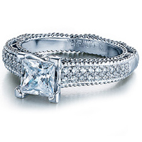 This engagement ring from the new Venetian Collection, featuring 0.25ct. of pave' set round brilliant-cut diamonds to enhance a princess diamond center.Price: $3,050.00